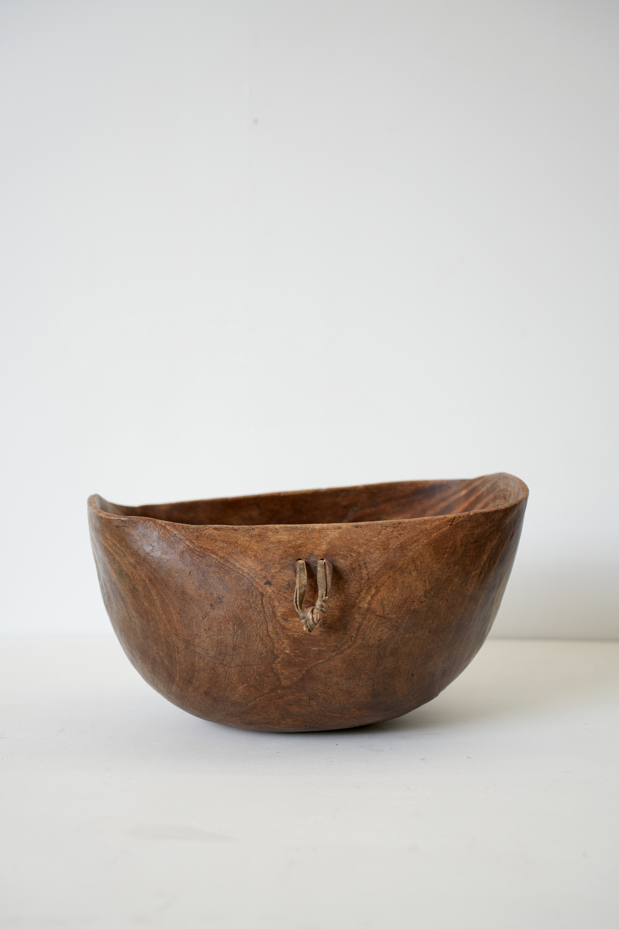 独特なフォルム、彫り、金属による修復跡などアフリカのウッドボウルの中でも最も魅力的なウッドボウルのひとつです。
