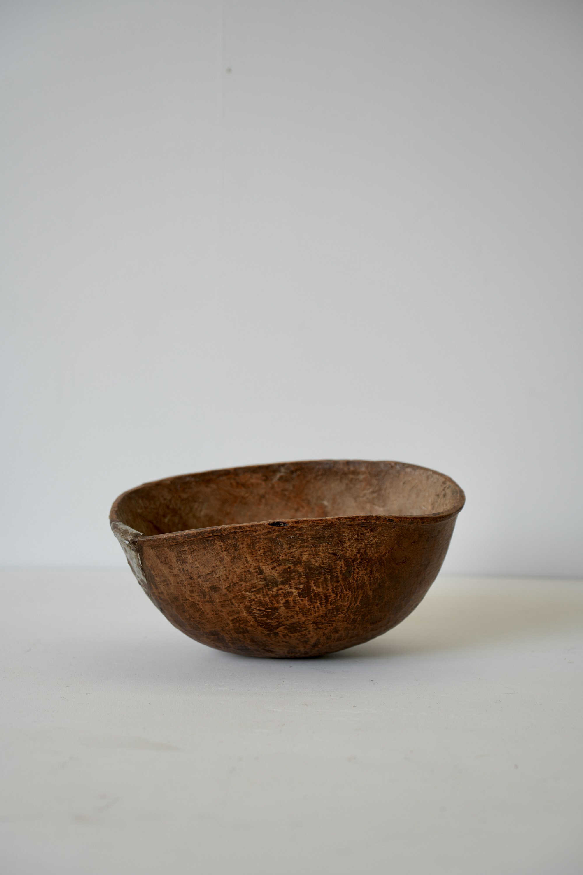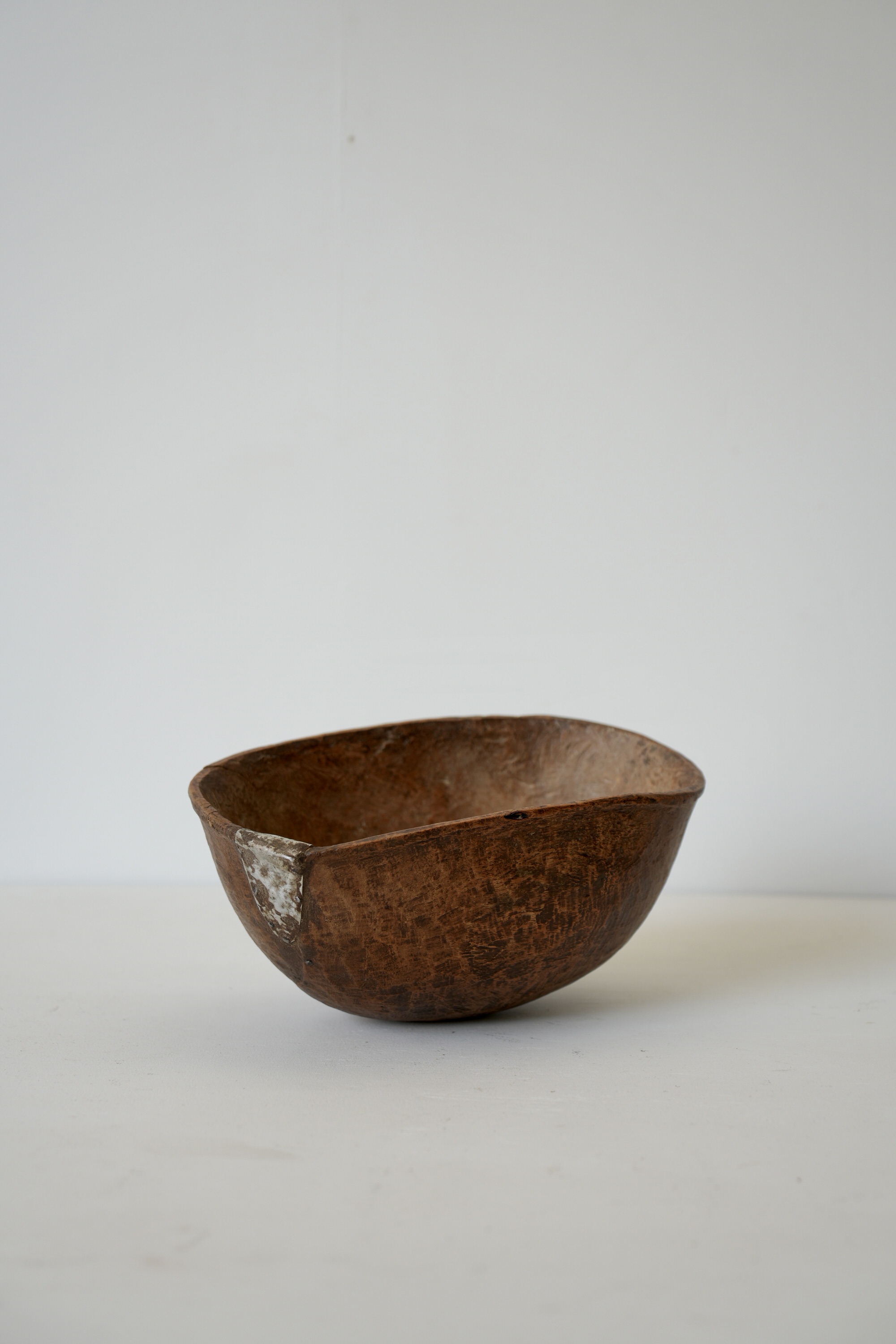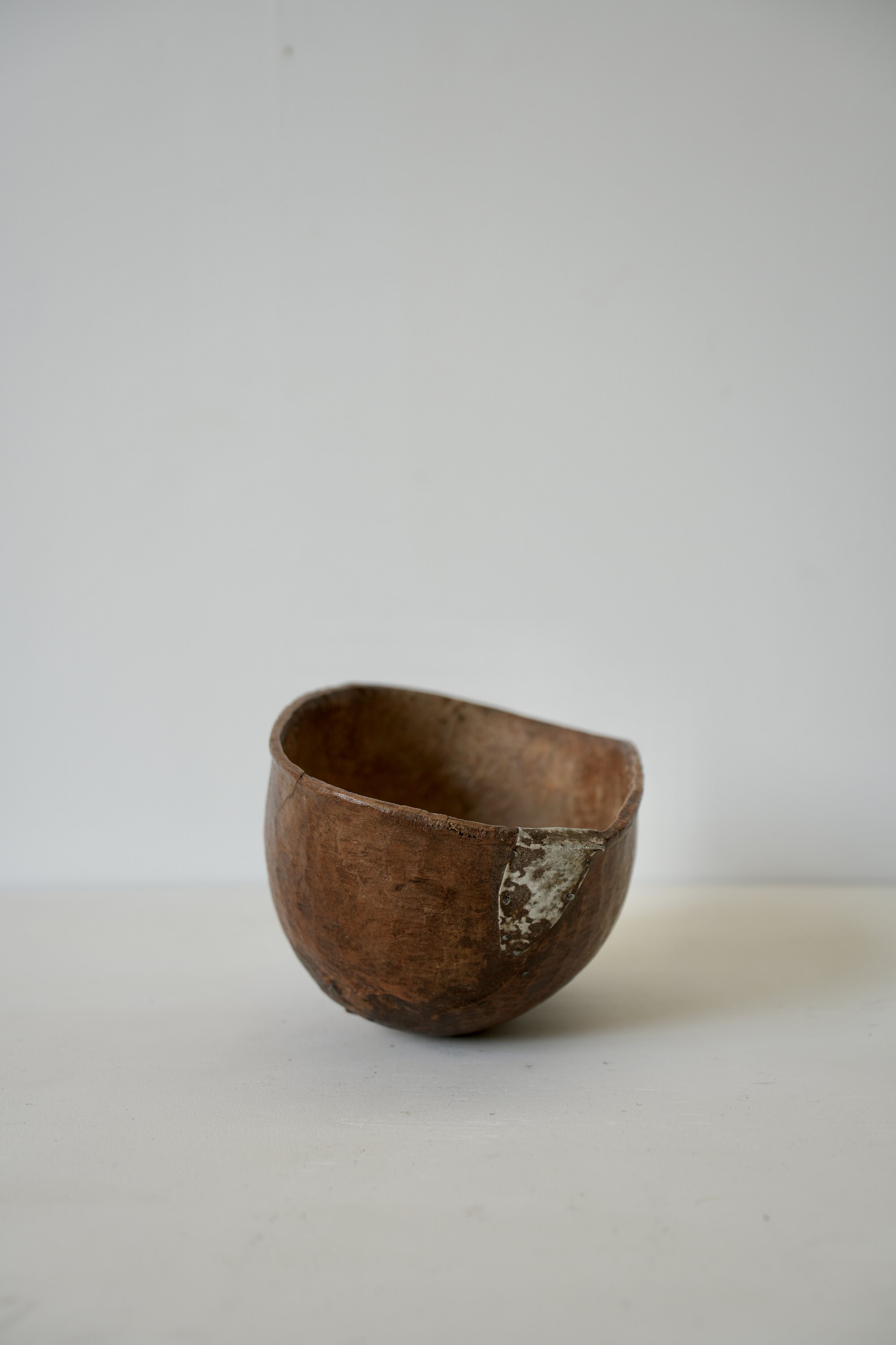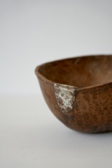 独特なフォルム、彫り、金属による修復跡などアフリカのウッドボウルの中でも最も魅力的なウッドボウルのひとつです。