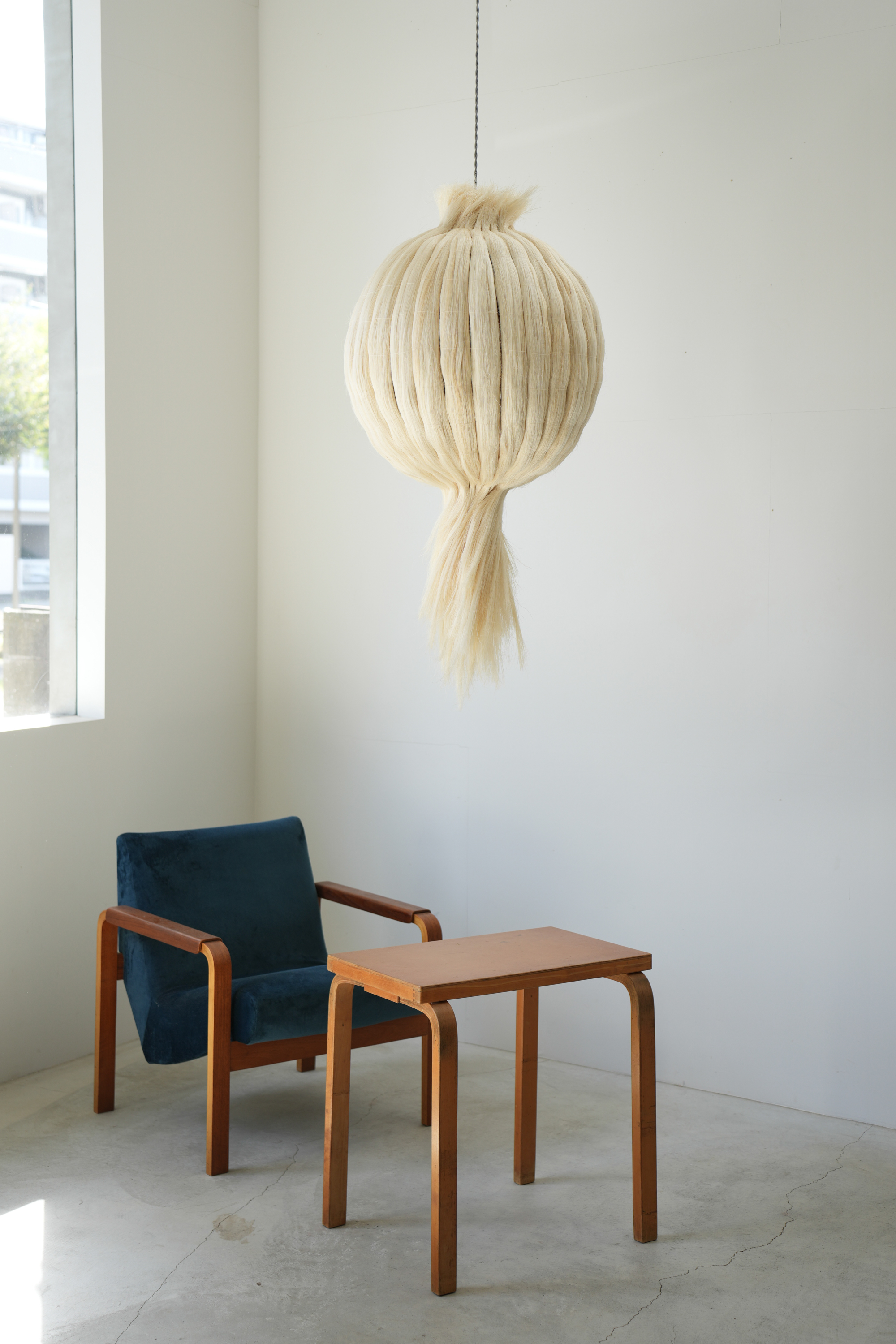 金属の球体にサイザルを組み合わせたオリジナル照明 ONION