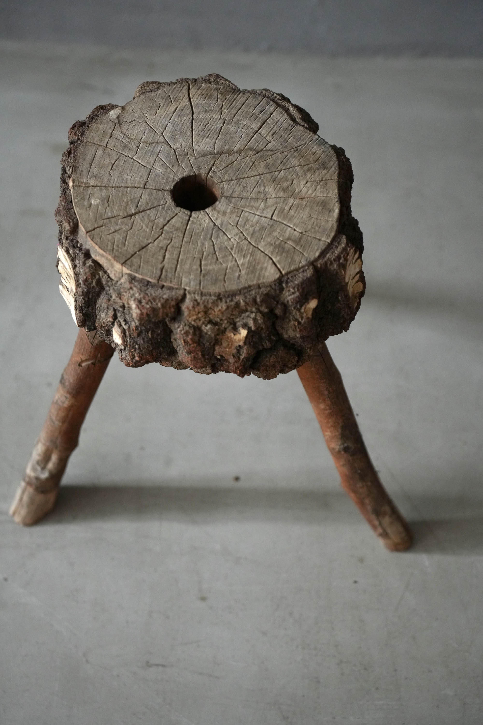 フランスで買い付けた3本脚のスツール。