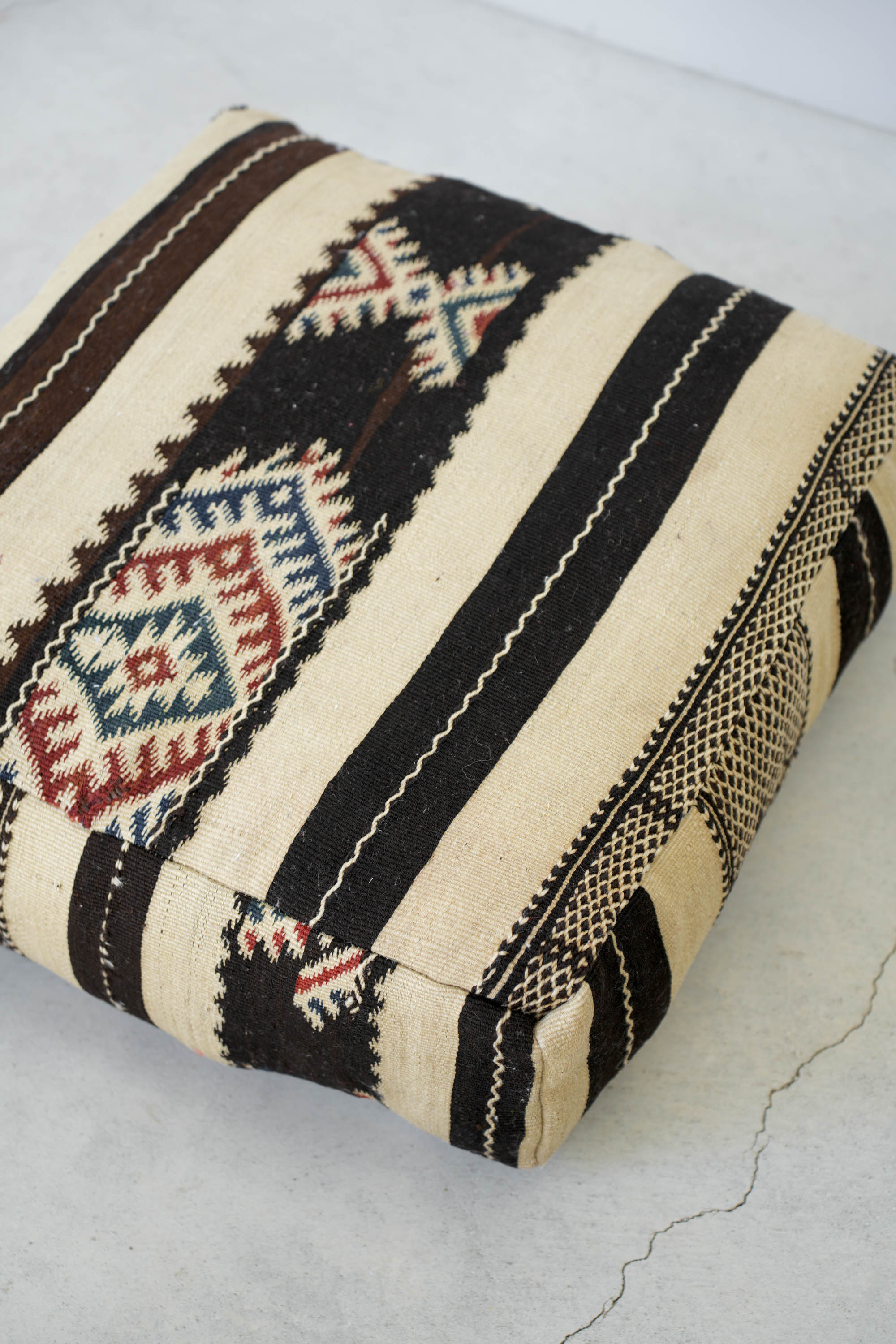 ヴィンテージのザナフィーというラグで作ってもらったプフ。