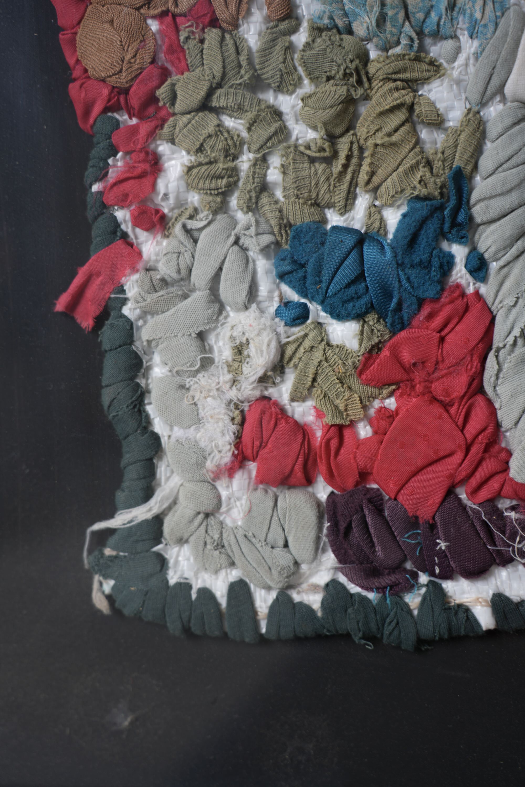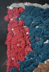 アフリカでよく見かける小麦袋(日本の土嚢袋みたいな)をベースに刺繍を施します。