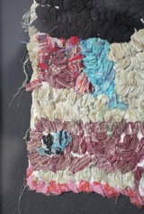 アフリカでよく見かける小麦袋(日本の土嚢袋みたいな)をベースに刺繍を施します。