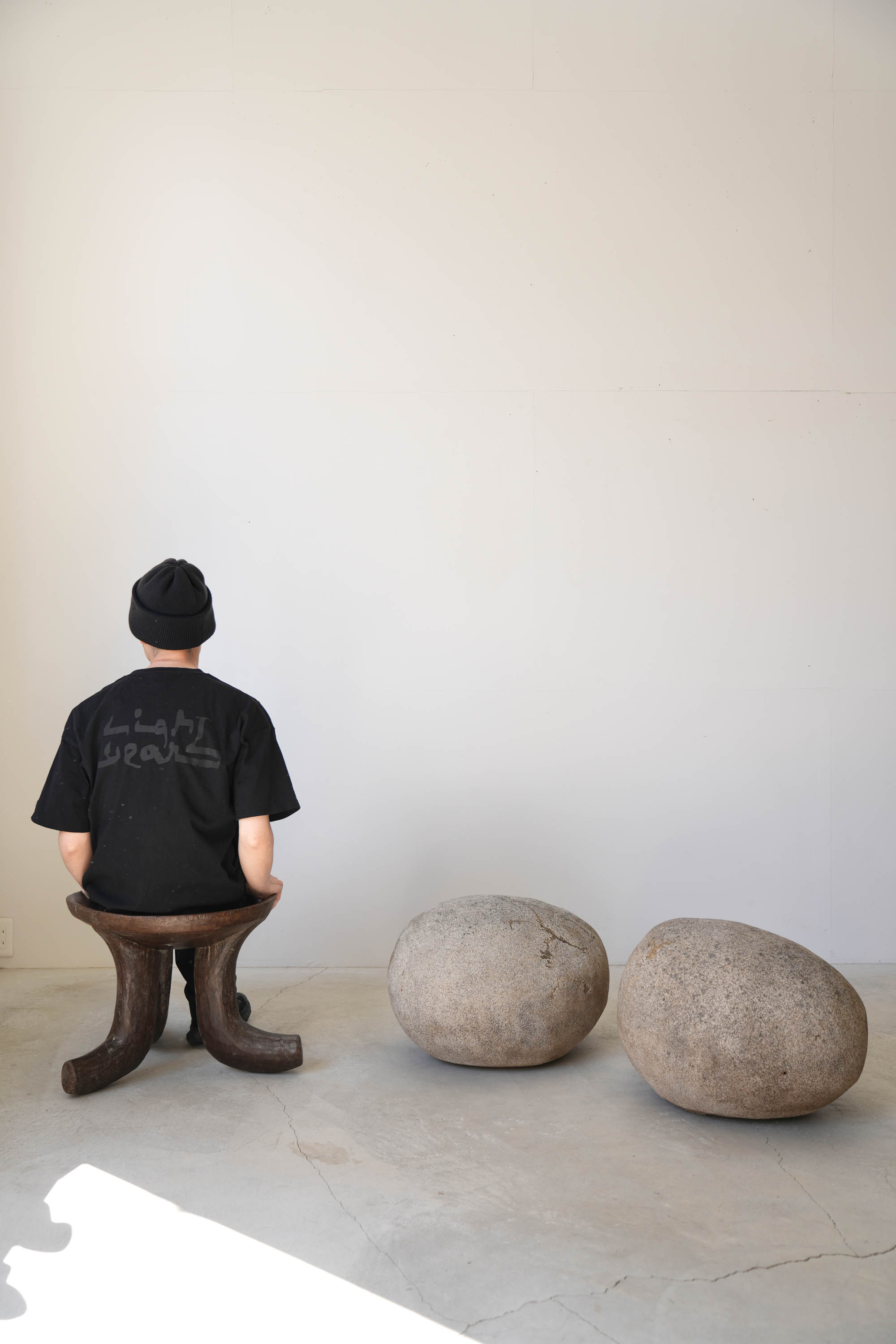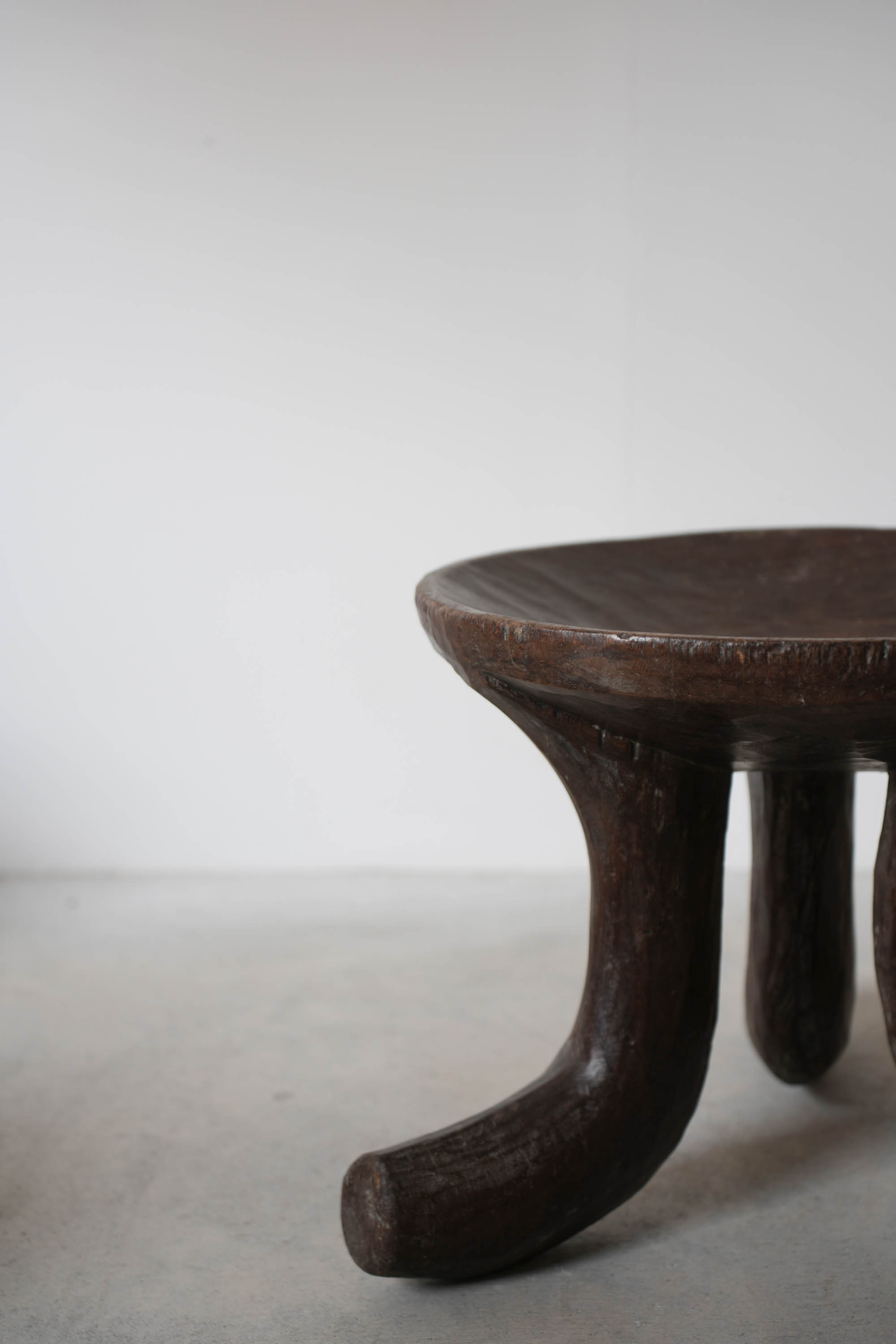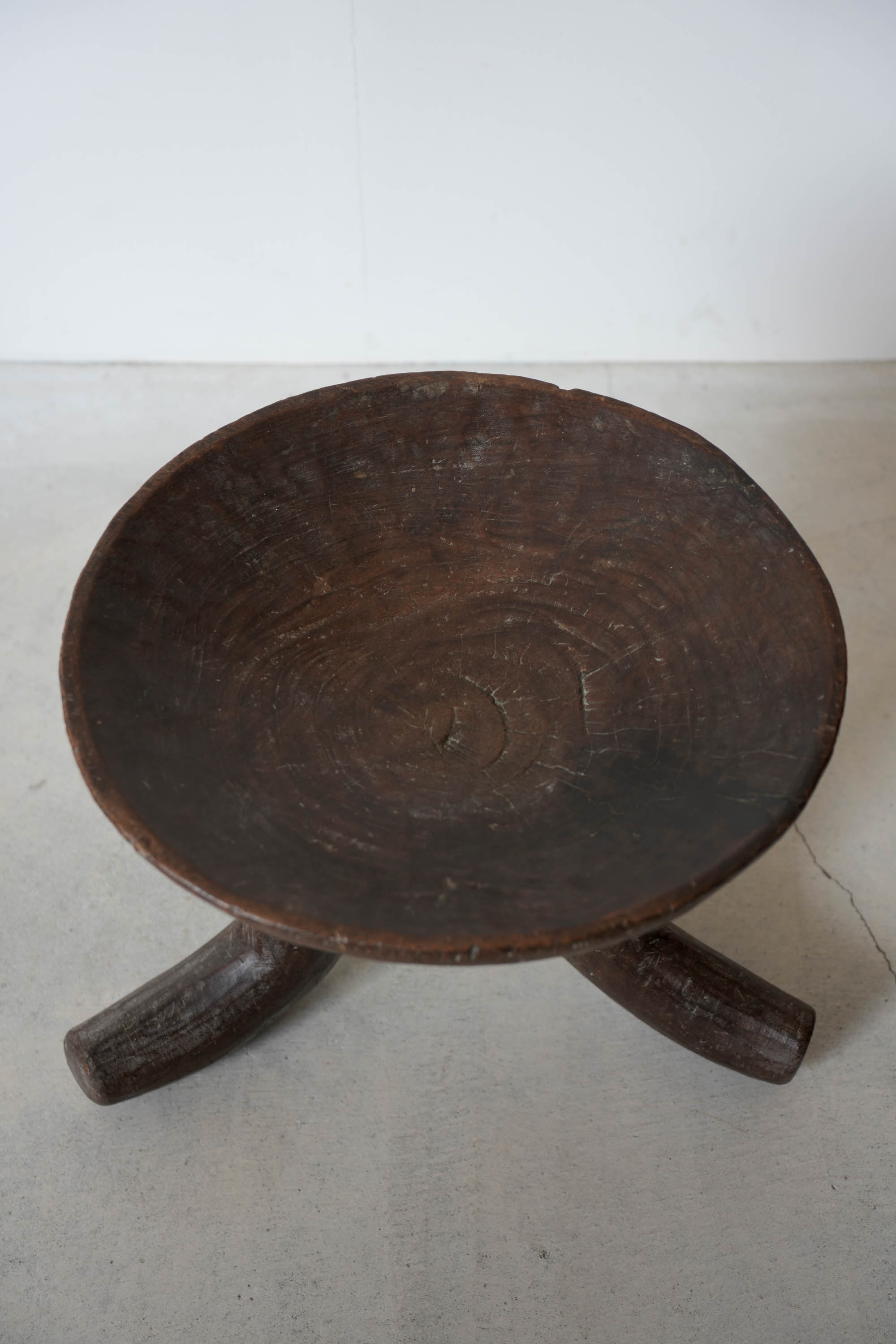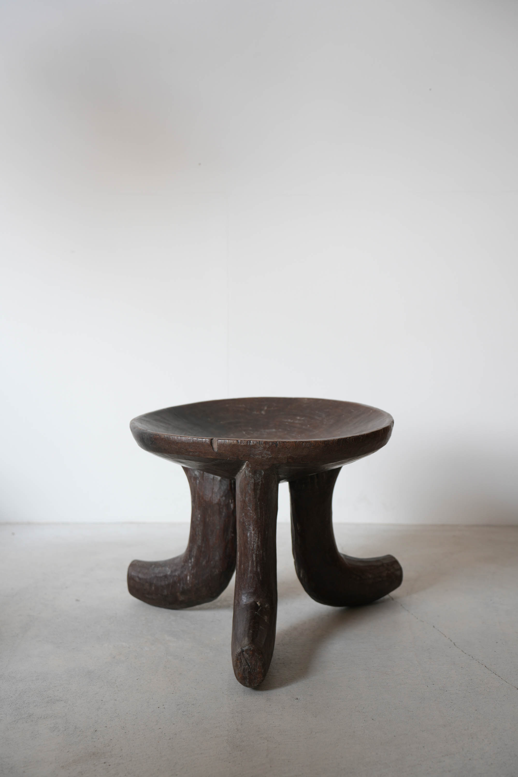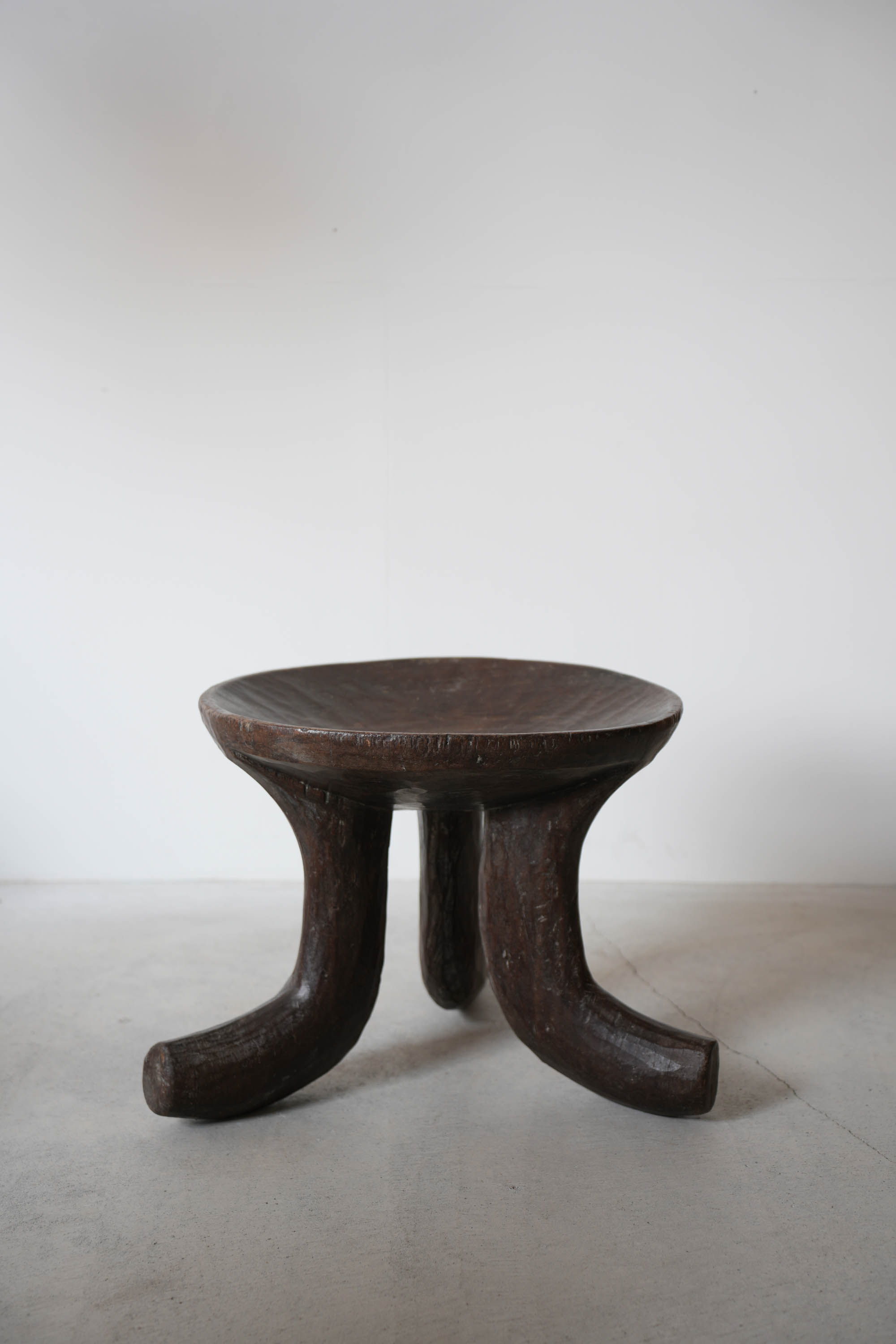 大きくカーブした3本脚が印象的で、とても存在感があるスツールです。