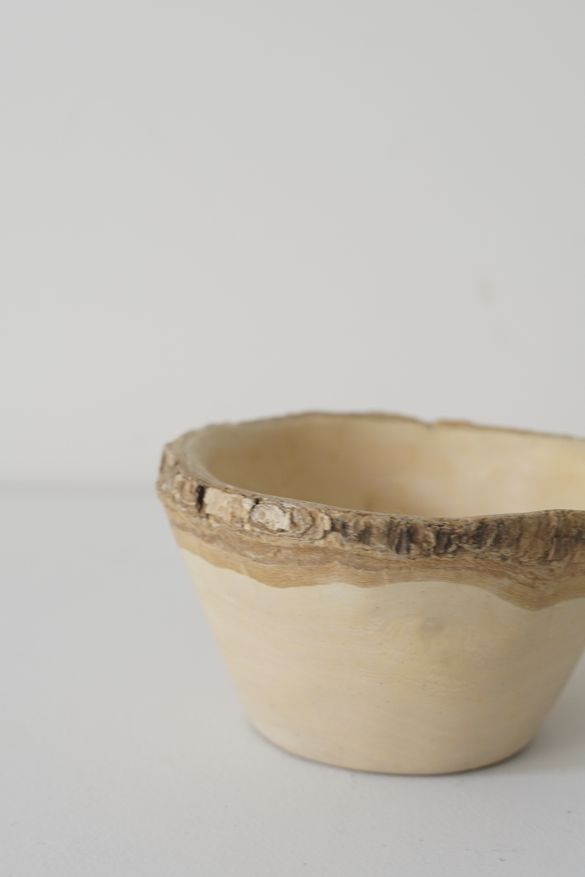 樹皮を残してあり、白い木肌とのコントラストがいい雰囲気です。