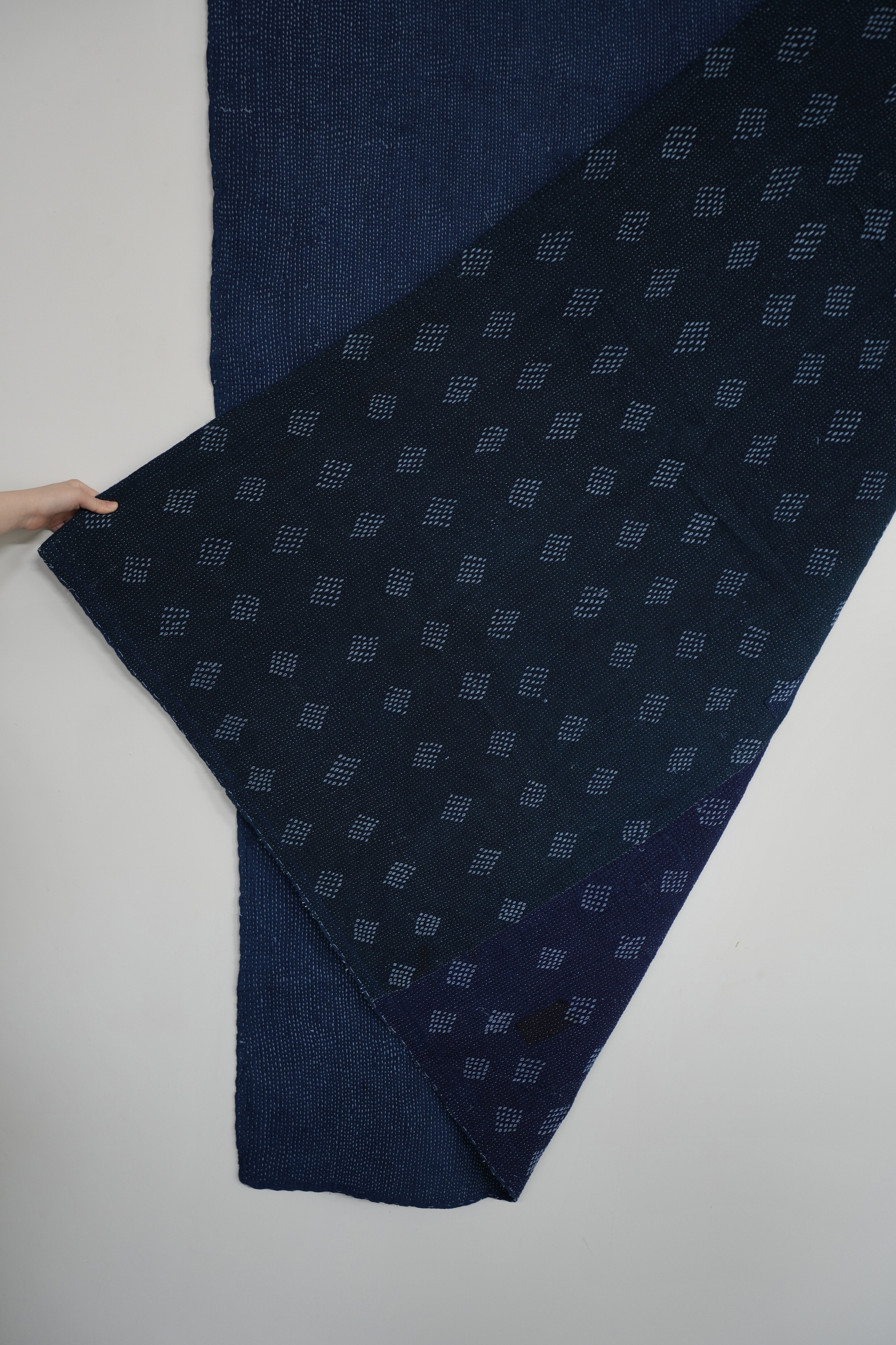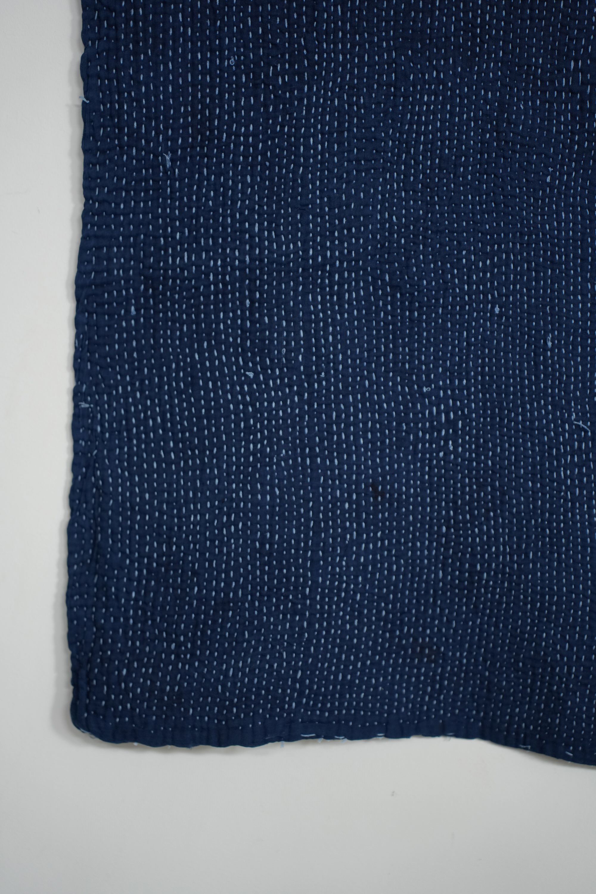 インドのヴィンテージキルトを奄美大島で藍染めしてもらったものです。