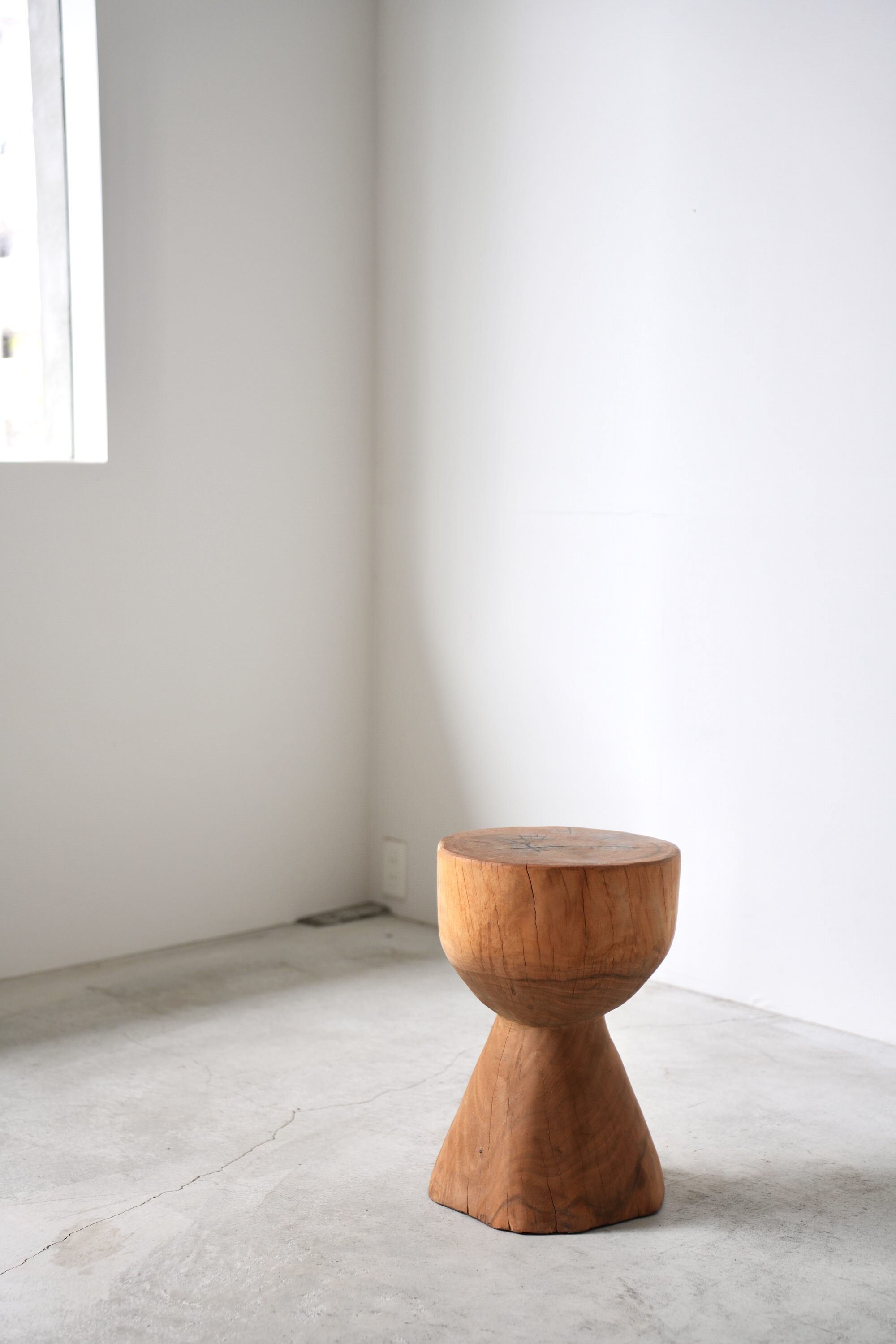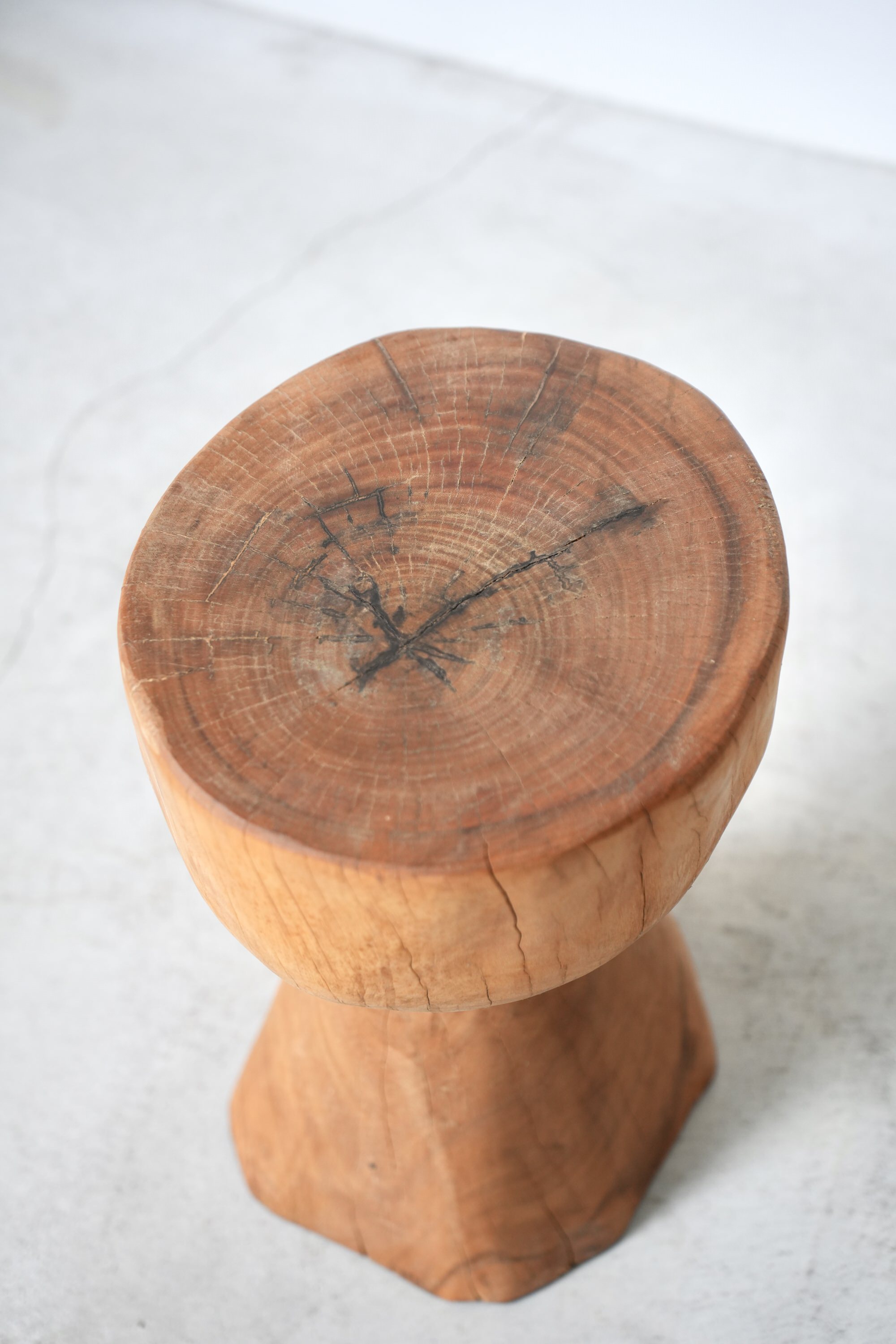 原木を削り出し作られた彫刻のようなスツール