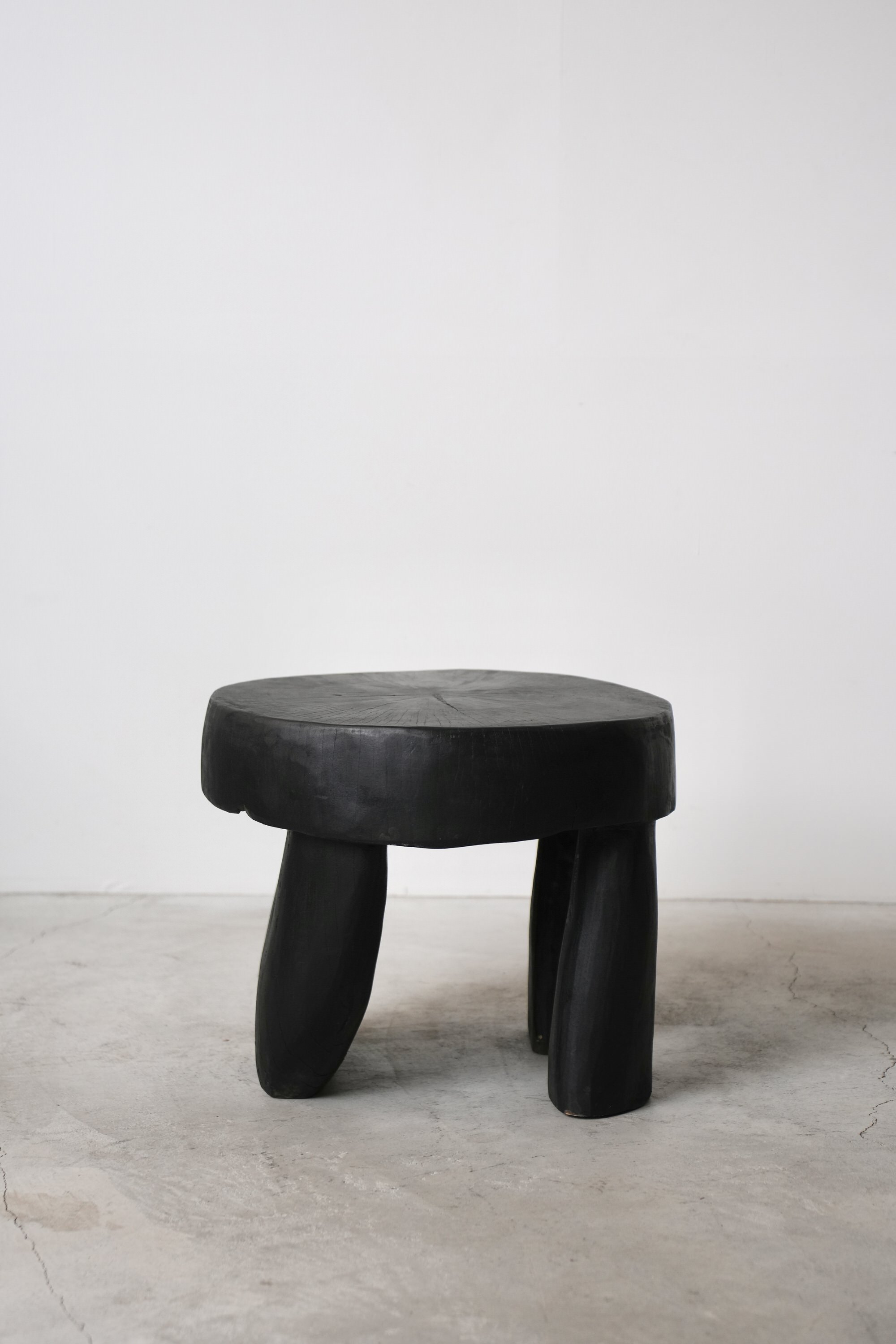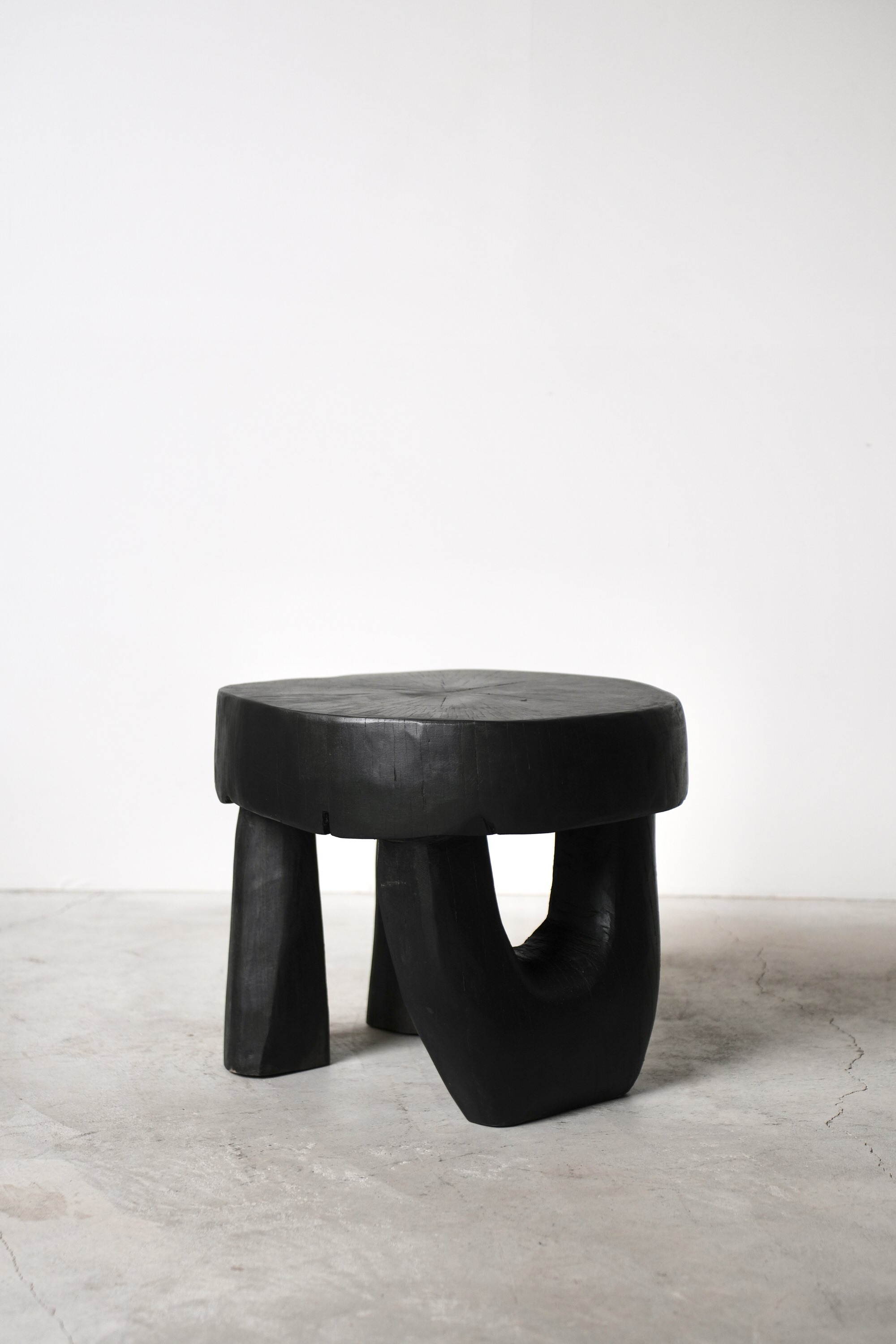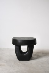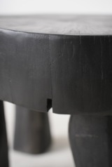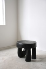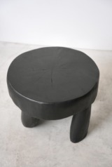 原木を削り出し作られた彫刻のようなスツールあるいはサイドテーブル
