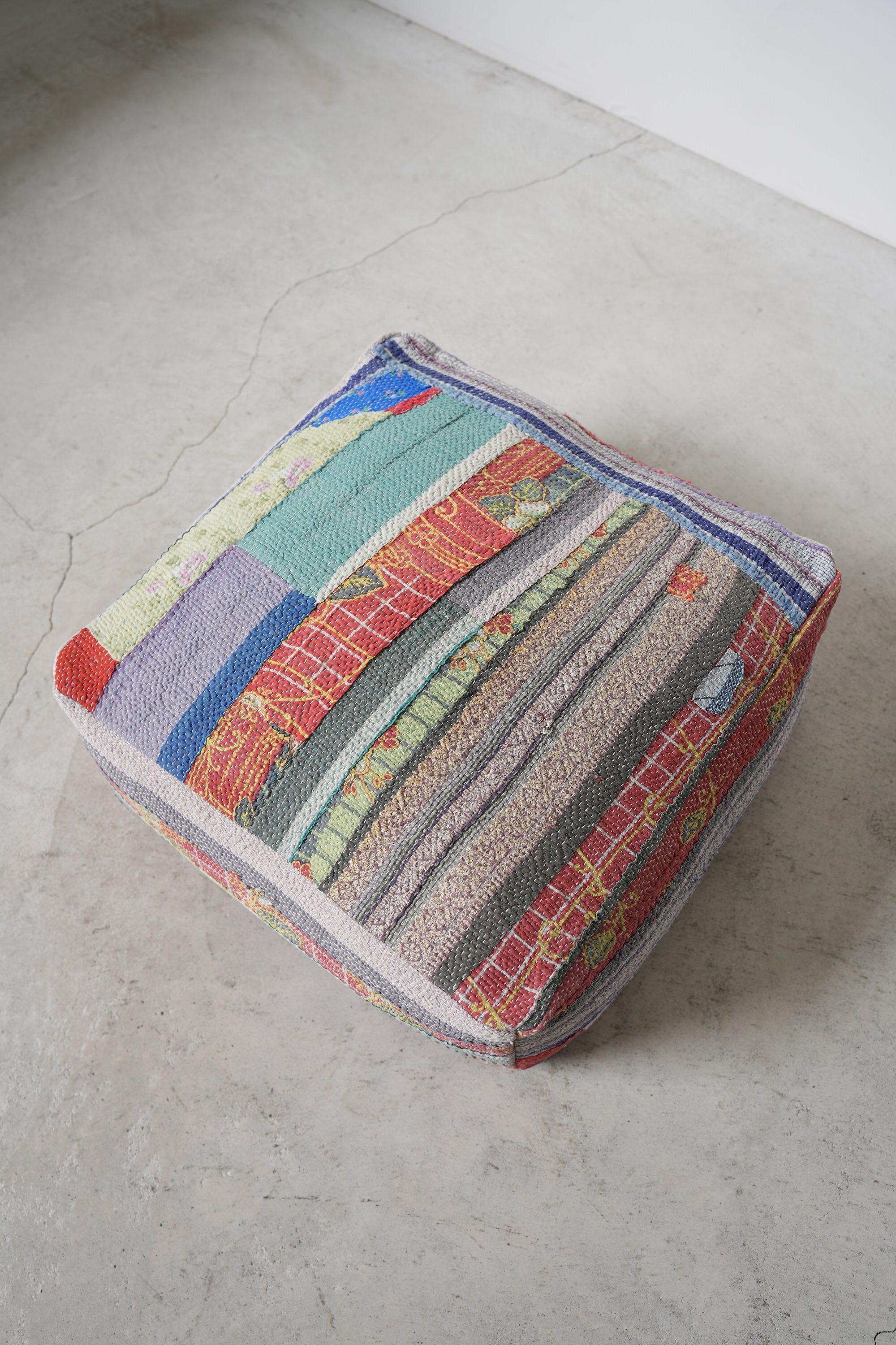 インドのヴィンテージキルトで作ったプフ。