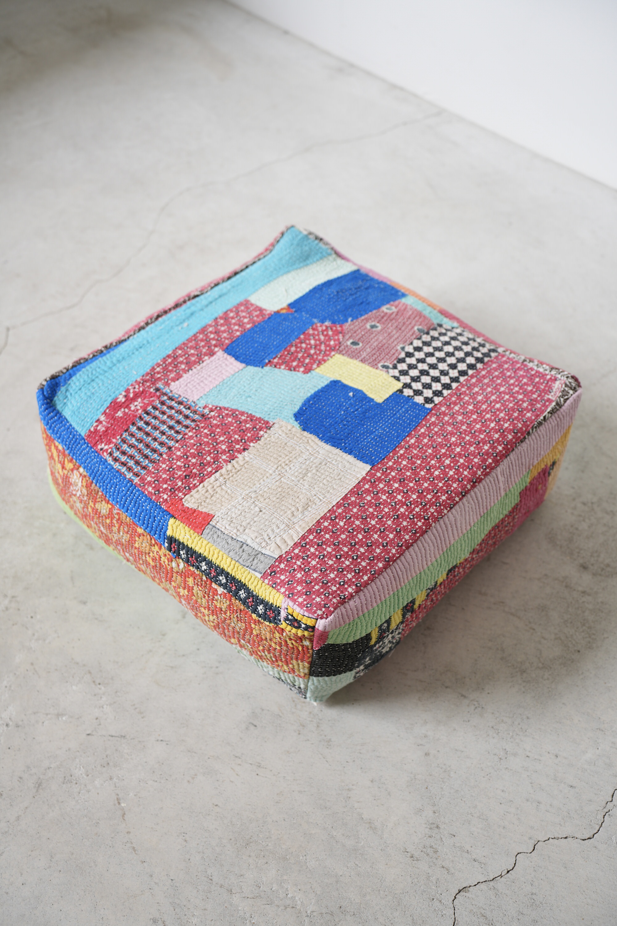 インドのヴィンテージキルトで作ったプフ。
