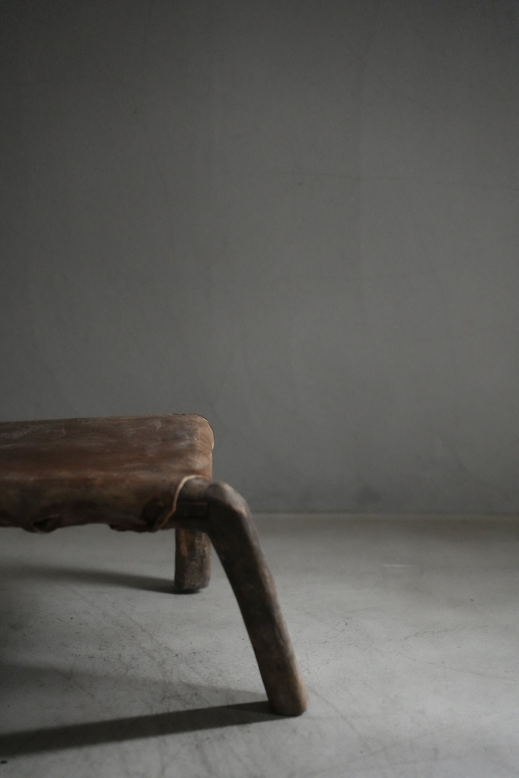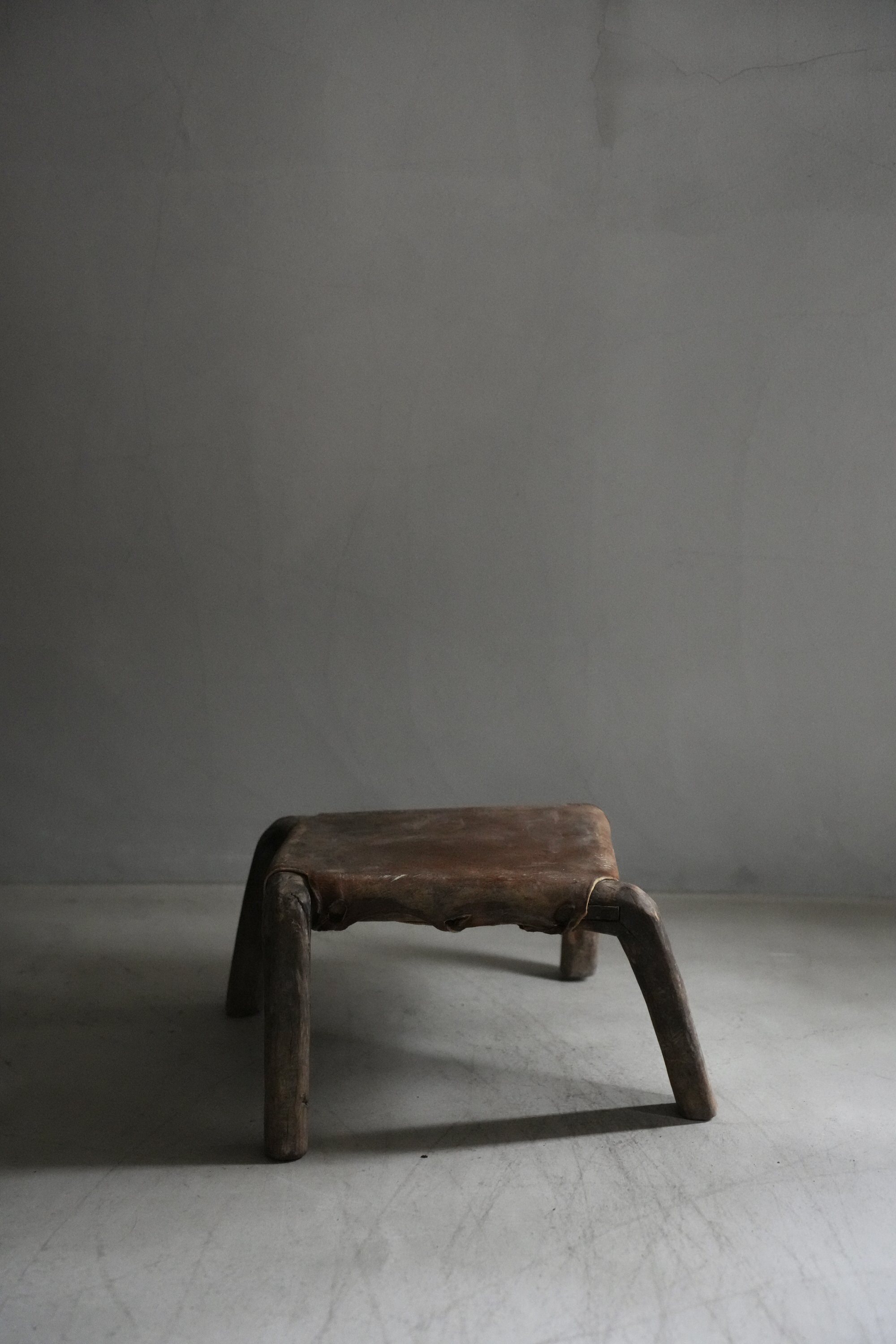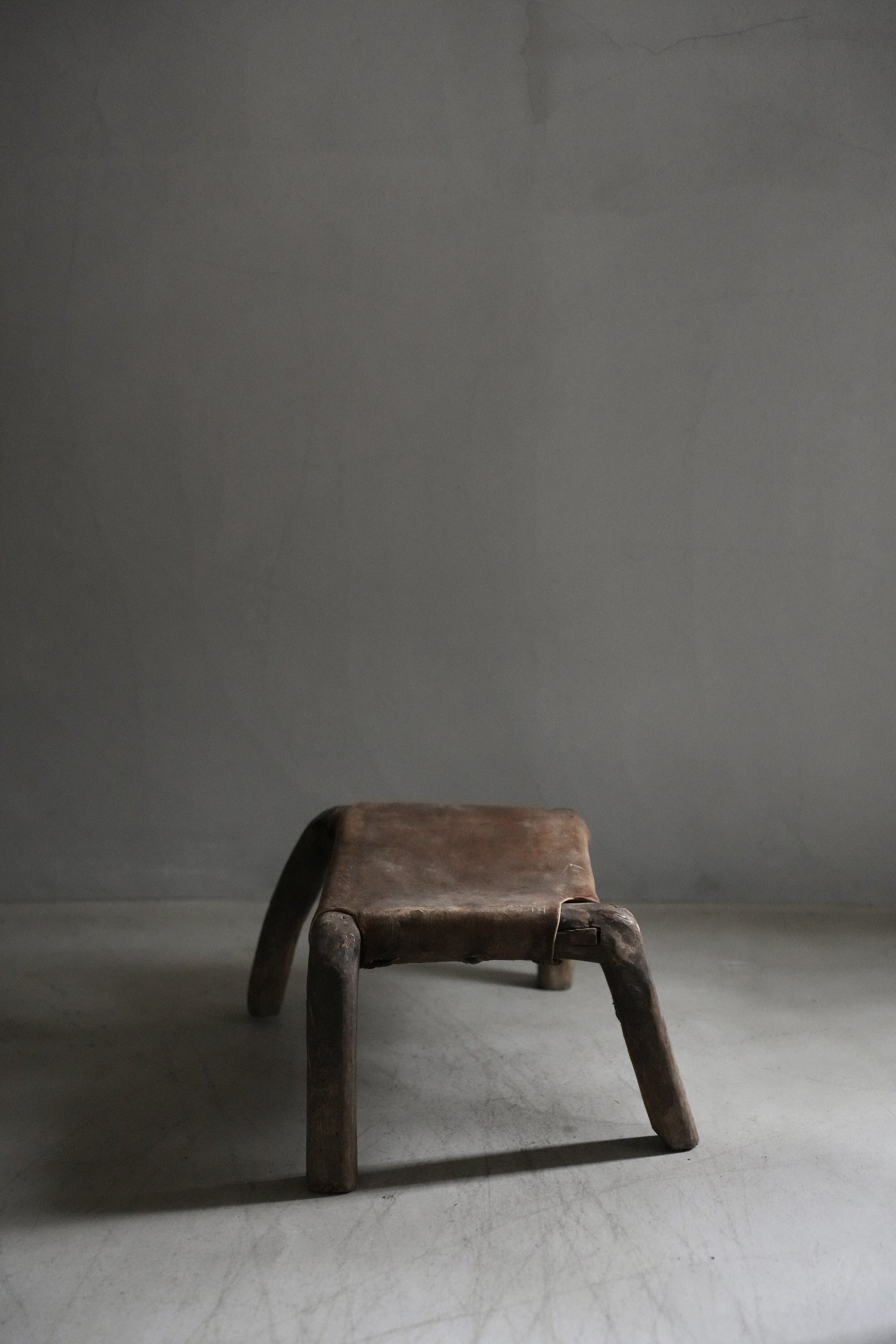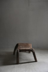 卍のように組まれた脚とレザーの組み合わせで、小ぶりながら存在感があるスツールです。