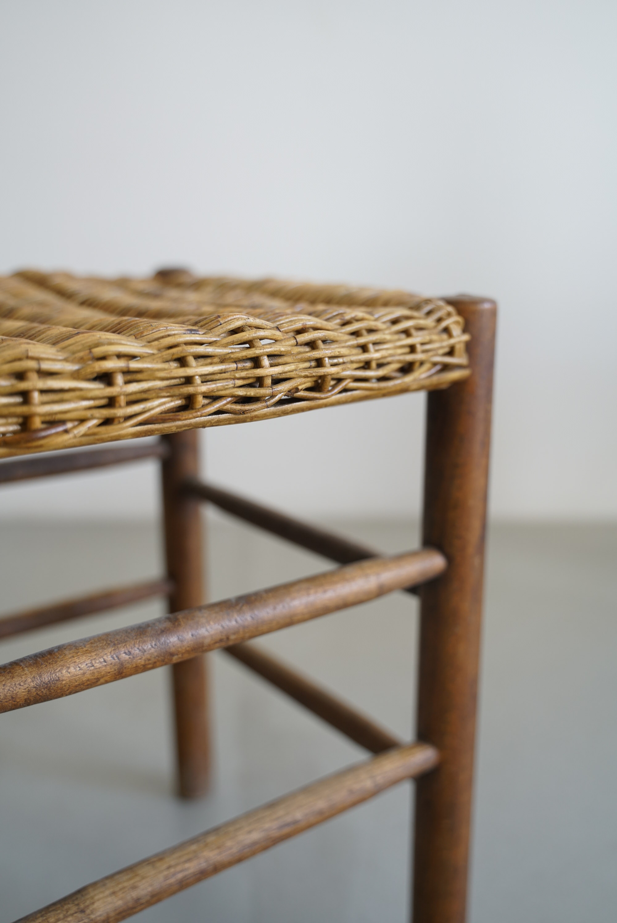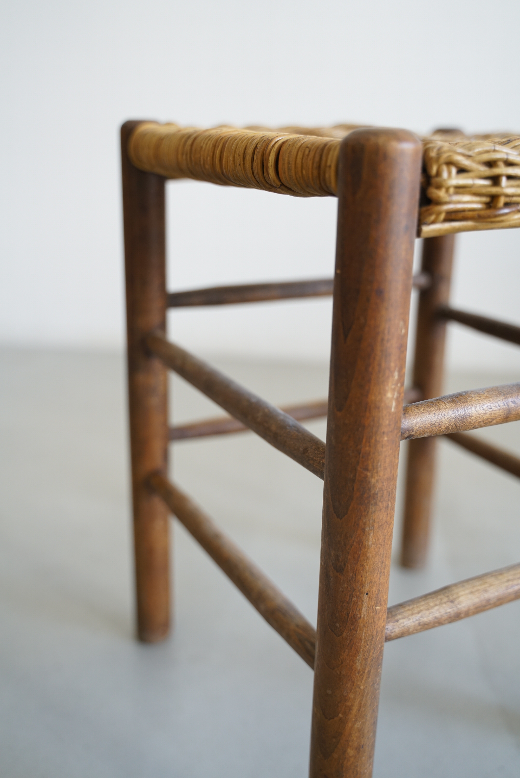 フランスで買い付けた古いラタンスツール。
